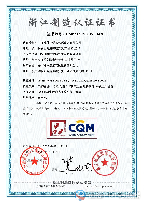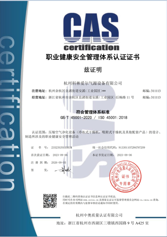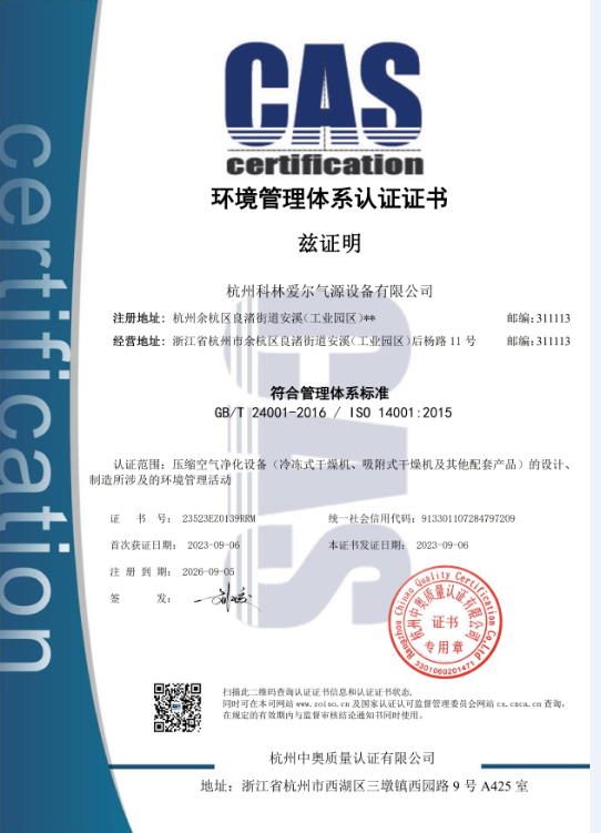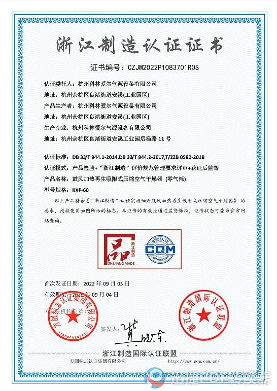 • 恭賀杭州科林愛爾氣源設備有限公司獲批浙江省“專精特新”中小企業認定 [2023/12/20]